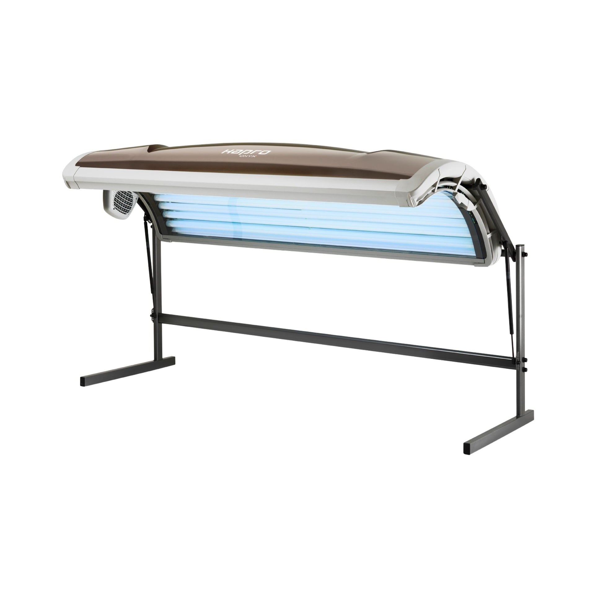 Der Onyx 14/1 T verfügt über eine 400-Watt-Hochdruckröhre. Dieser Gesichtsbräuner sorgt für einen zusätzlichen Bräunungsakzent im Gesicht und sorgt zudem für angenehme Infrarotwärme.
